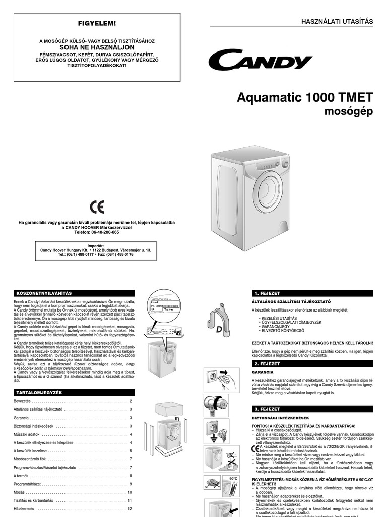 Aquamatic 6t 8t 10t Importor Candy Hoover Hungary Kft Budapest Maros U 12 Tel 06 1 Fax 06 1 Pdf Free Download