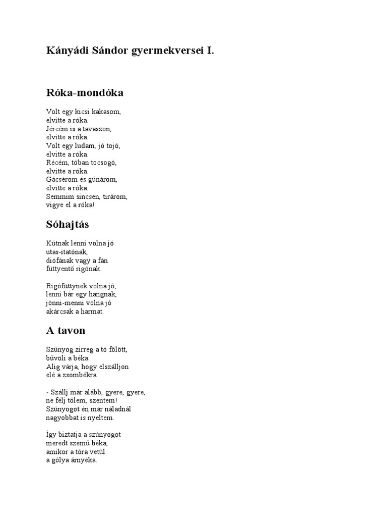 Kanyadi Sandor Gyermekversei I