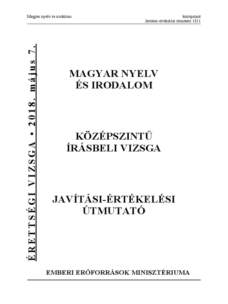 Nyilvanosak A 2018 Majusi Erettsegi Feladatsorok Es Javitasi Ertekelesi Utmutatok Magyartanarok Egyesulete