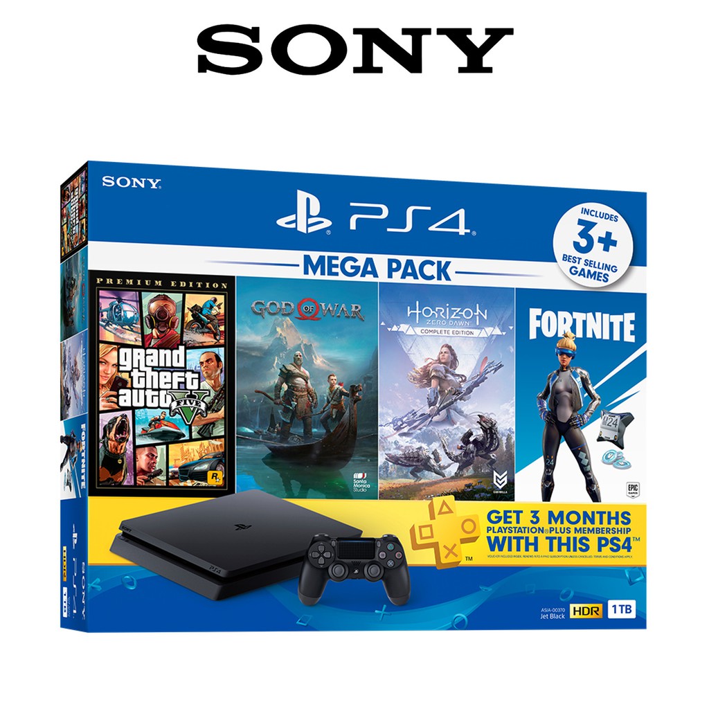 Sony Playstation 4 Slim Ps4 Slim 1tb Mega Pack 2 God Of War Horizon Gta 5 Fortnite Free 3 Months Ps Plus Shopee Singapore