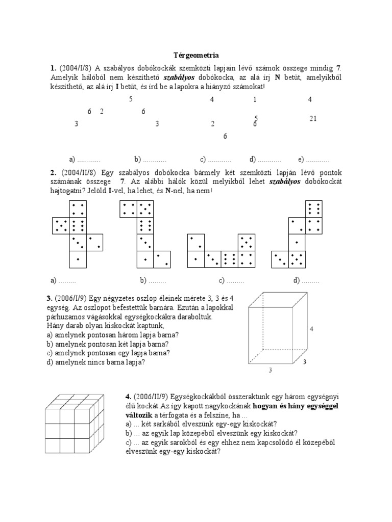 Erettsegi Feladatok Tergeometria 1 6 Pdf Ingyenes Letoltes